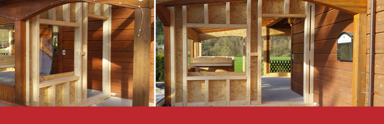 • Holzständerwände, Wanddämmung, Beplankung mit OSB und Gipskarton