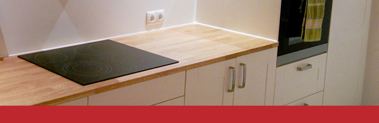 • Arbeitsplatten aus Vollholz und Corianmaterial